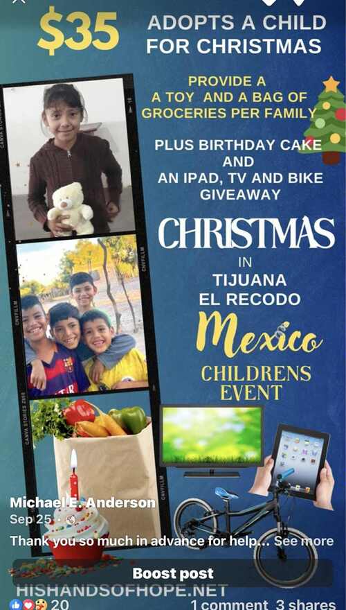 April 2014 – Then bible student, Michael Anderson set off on a weekend Mission to Tijuana, MX to lend a hand and a hug. Overwhelmed and compelled to do more, Michael began the first steps of creating a non-profit.